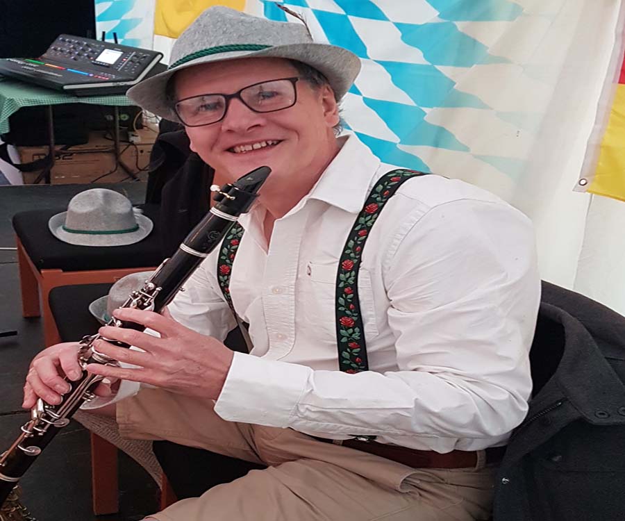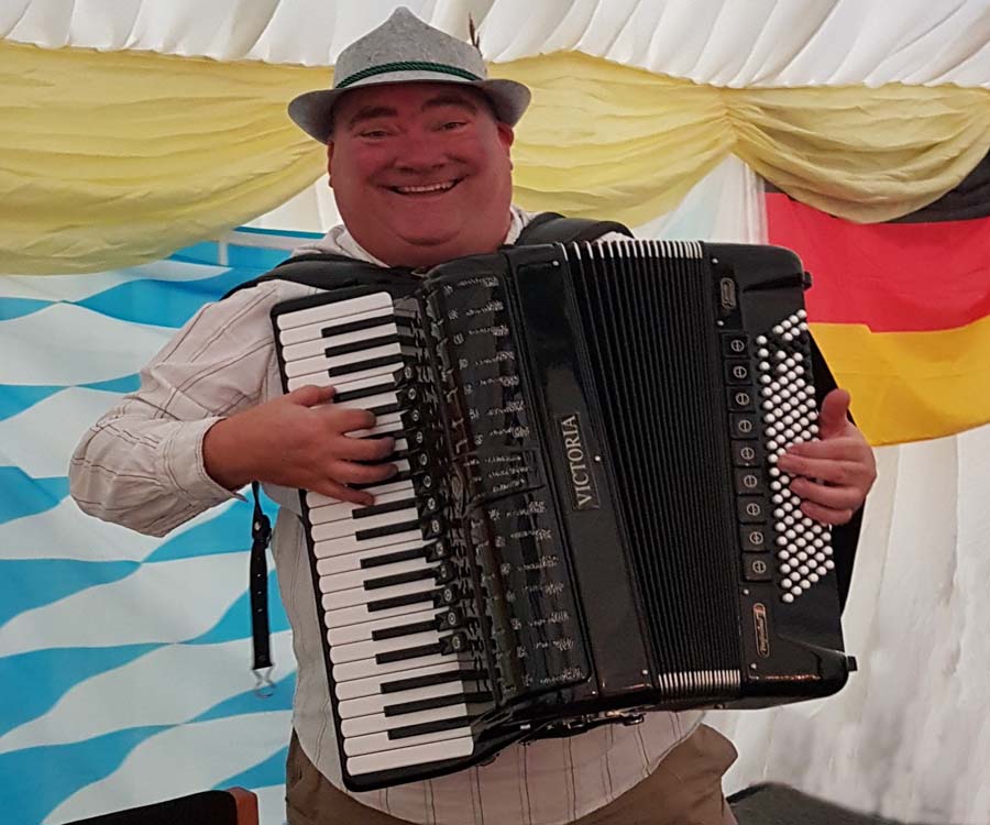 Herr gives the band its oompah, as he plays the tuba. He is often seen first at the food buffet waiting for a pork schnitzel or two accompanied with a plate of sauerkraut.